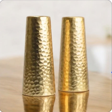 Salt and Pepper Shaker Set with Two Tone Hammered Design