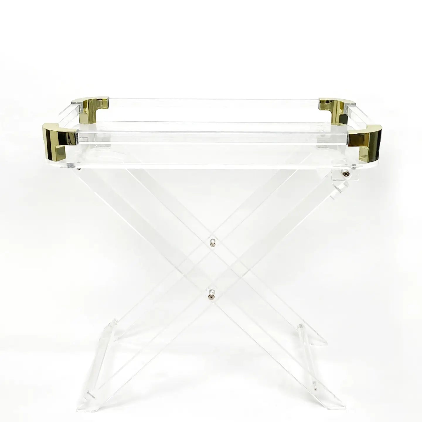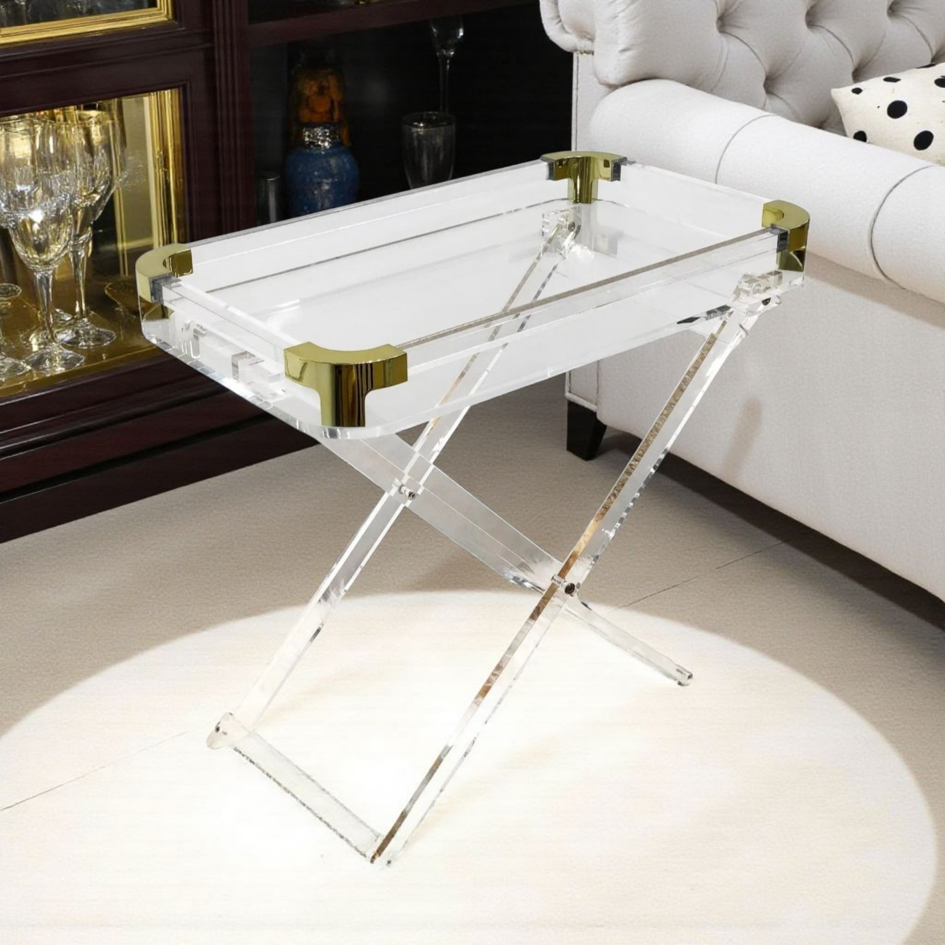 Glibatore - Acrylic Foldable Tray Side Table with Gold Edges