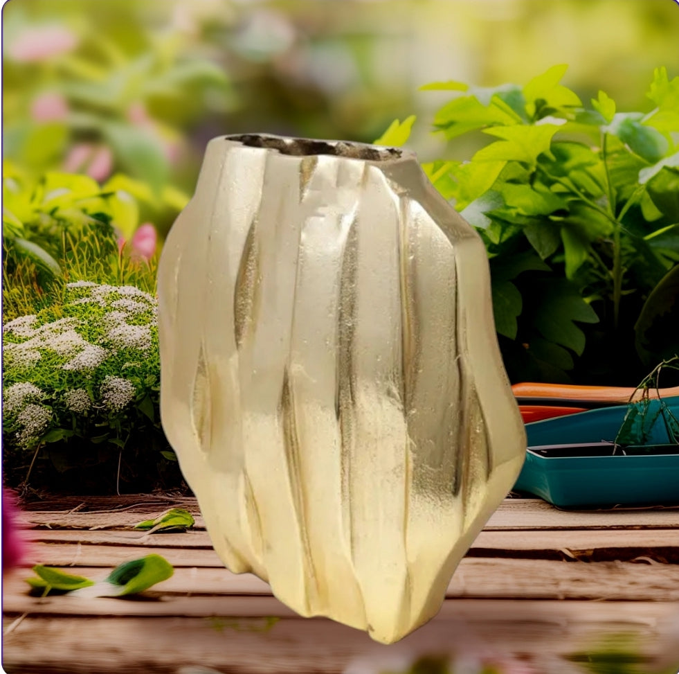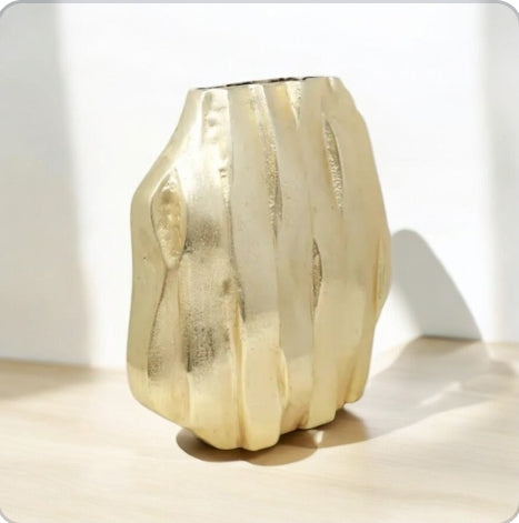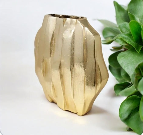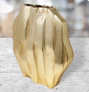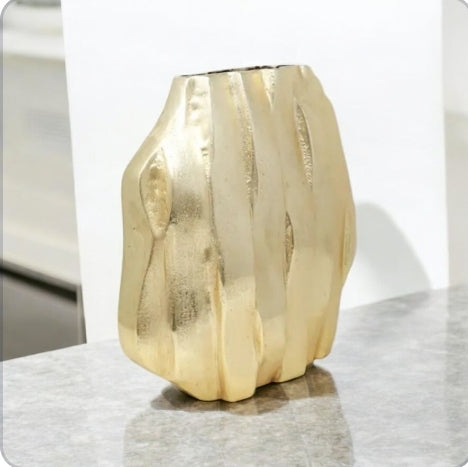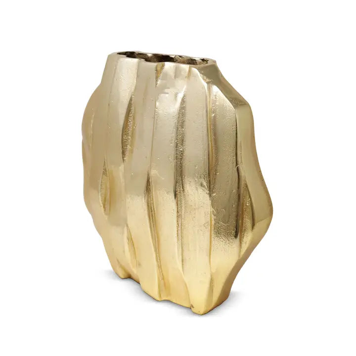 Elevate your interior design with Halifax, a majestic gold dimensional hexagon vase. Featuring a striking gold design, this statement piece will add an elegant touch to your home decor. Make a bold statement with this beautiful vase.