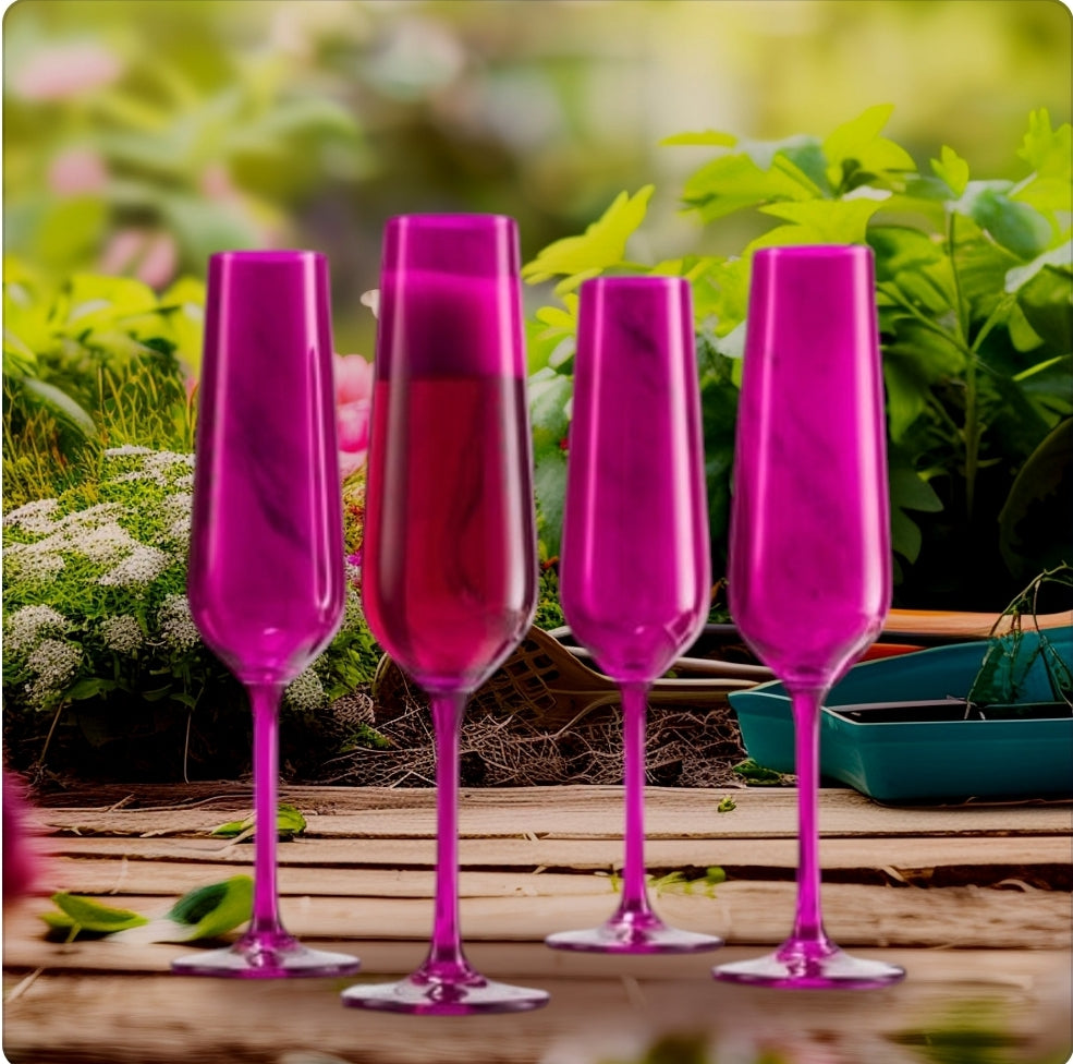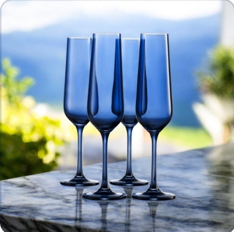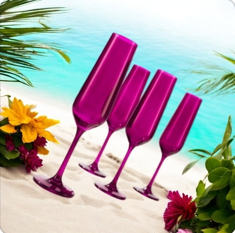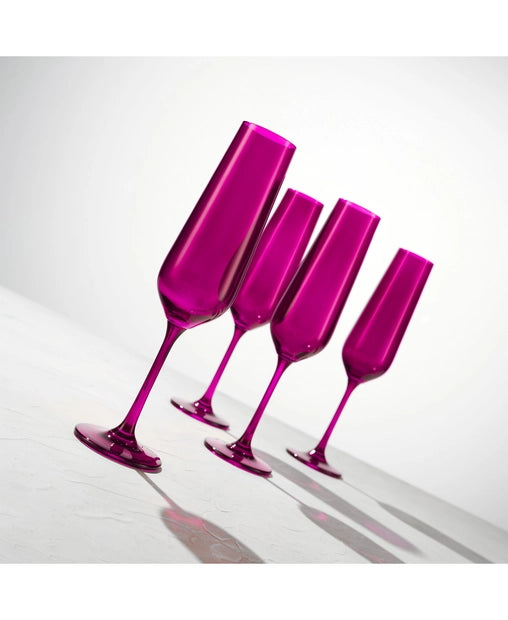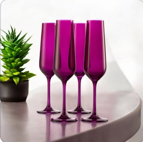 Raise your glass to adventure with Katram Castle Colored Champagne Flutes! Made in Europe with non-leaded crystal, this set of four comes in bold hues including purple, blue, green, and coral. Each flute holds 7 oz, perfect for adding a splash of color to your next celebration!
