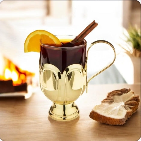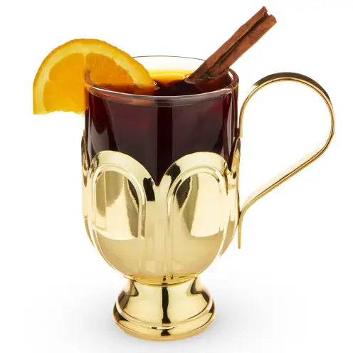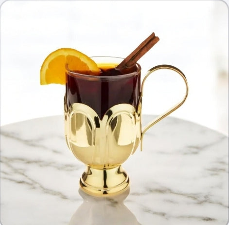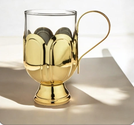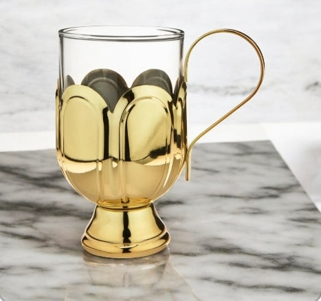 Glass Mug w/ Gold-Plated Stainless Steel Scalloped Base