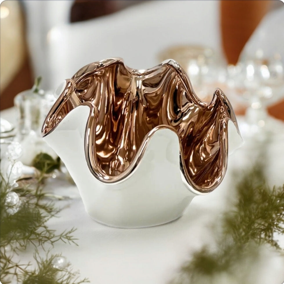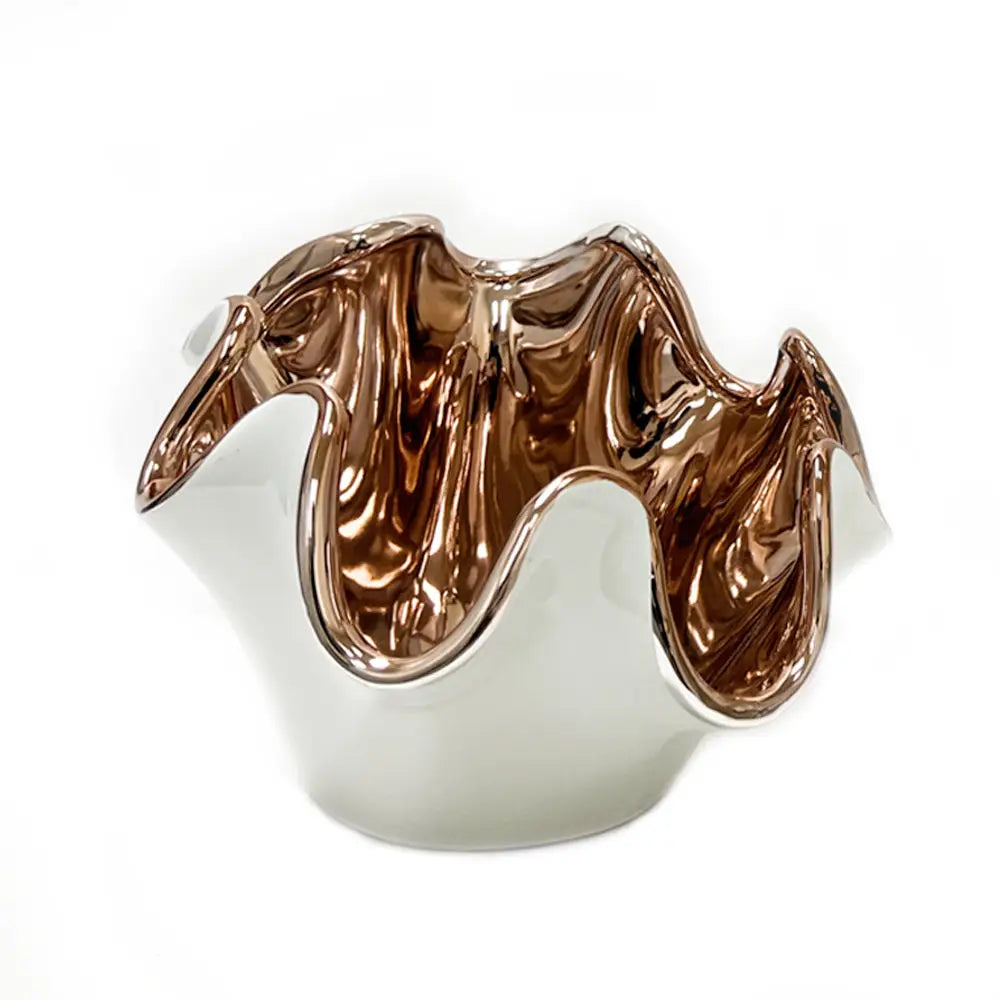 Introducing the Relford vase, standing tall at 7.75 inches with a sleek scallop design and a metallic white finish. Perfect for adding a touch of elegance to any home, this vase exudes luxury and sophistication. Showcase your favorite flowers in this exclusive piece, crafted with the finest materials for a truly tasteful addition to your decor.