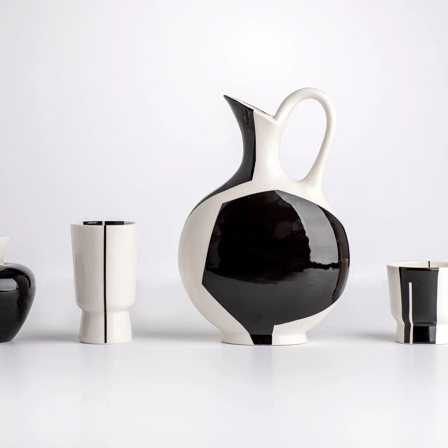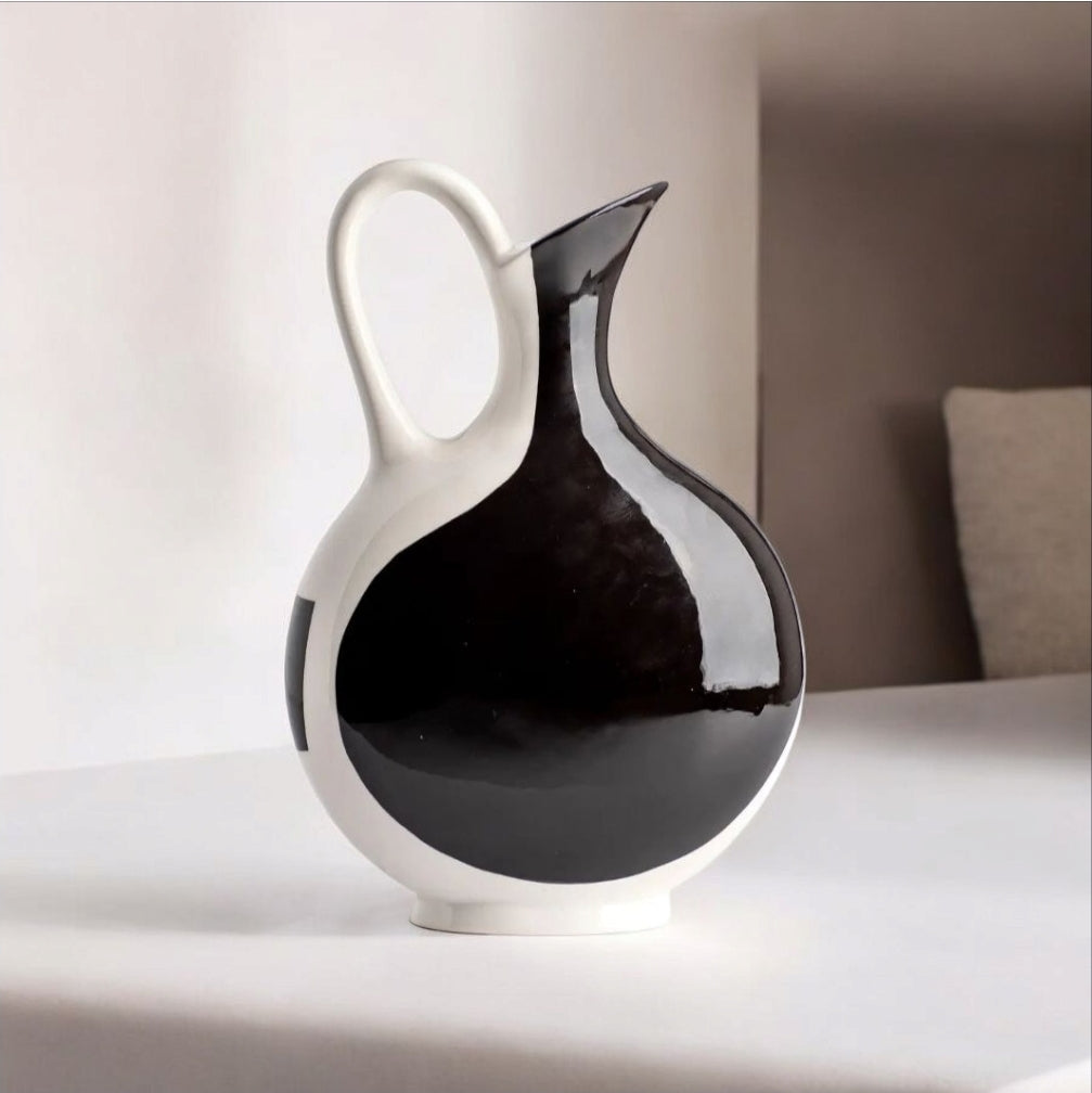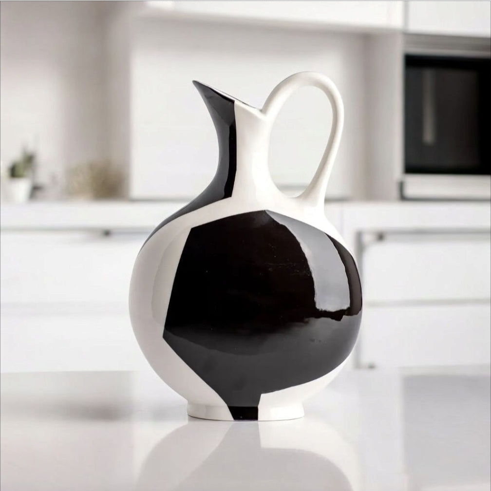 Elevate your dining experience with the Ulster Spring Tall Pitcher, a masterful fusion of form and function. Hand-designed by Christina Osheim, this modern porcelain vessel features sophisticated geometric color blocking that complements its architectural silhouette. Whether serving refreshing beverages or standing alone as a sculptural accent piece, this versatile pitcher transitions effortlessly between practical utility and artistic statement—a refined addition to any curated home collection.